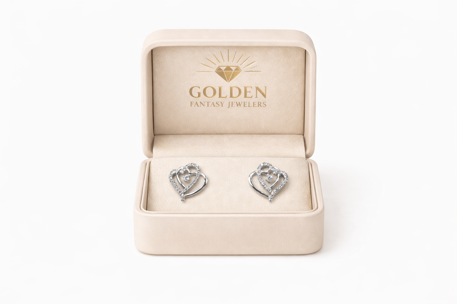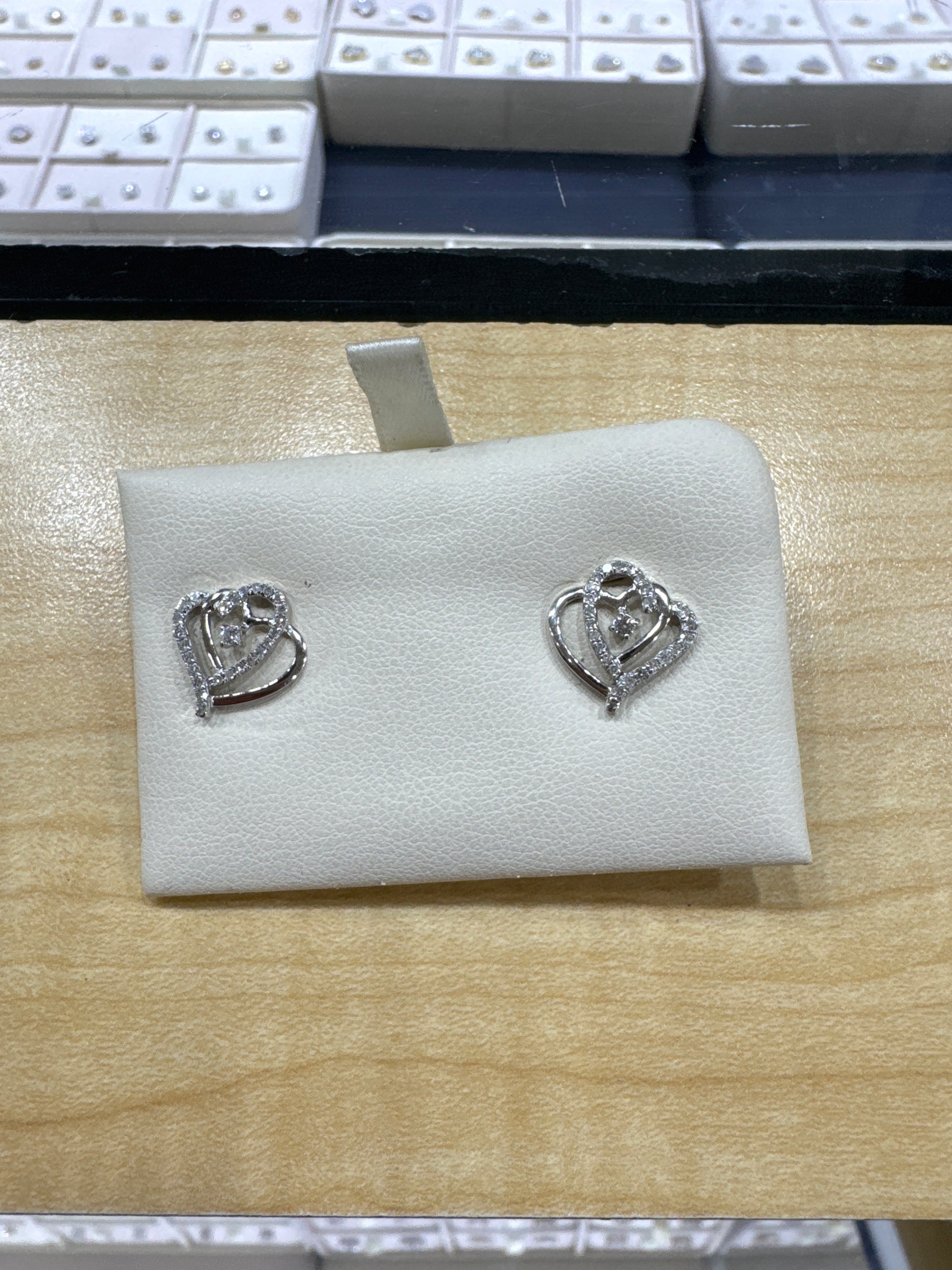 10K White Gold Earrings heart earrings 0.30 ct Natural Diamond, valentines gift