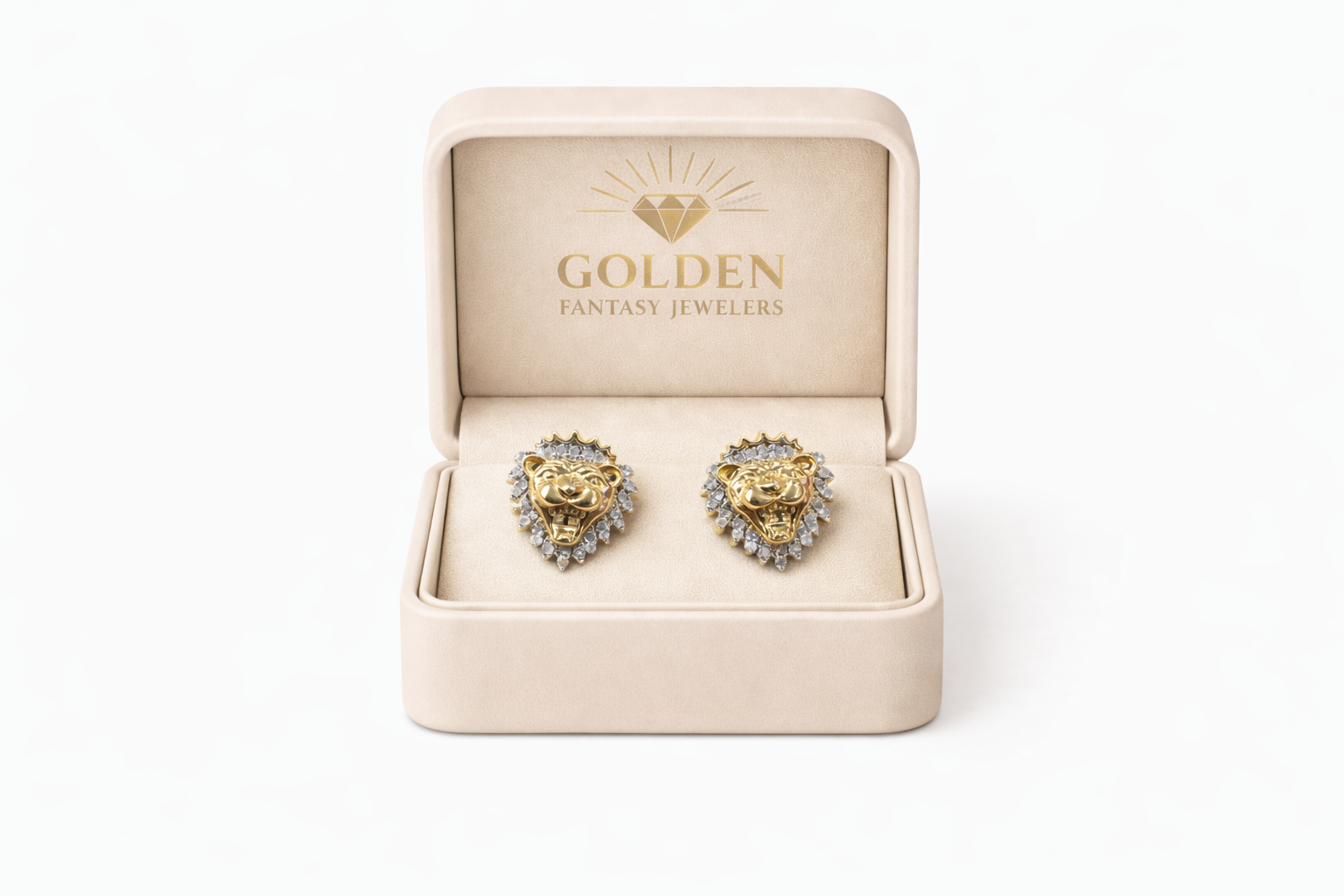 10K Yellow Gold Lion Earrings 0.15 ct Natural Diamond