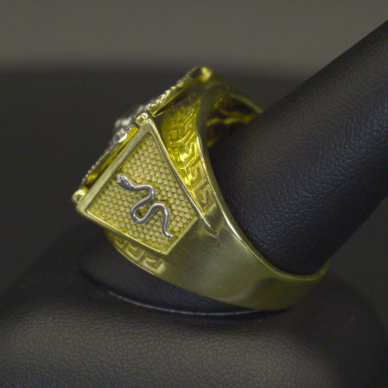 10K Yellow Gold Men's Ring Greek-Key Frame and Snake 0.44 ct Natural Diamond