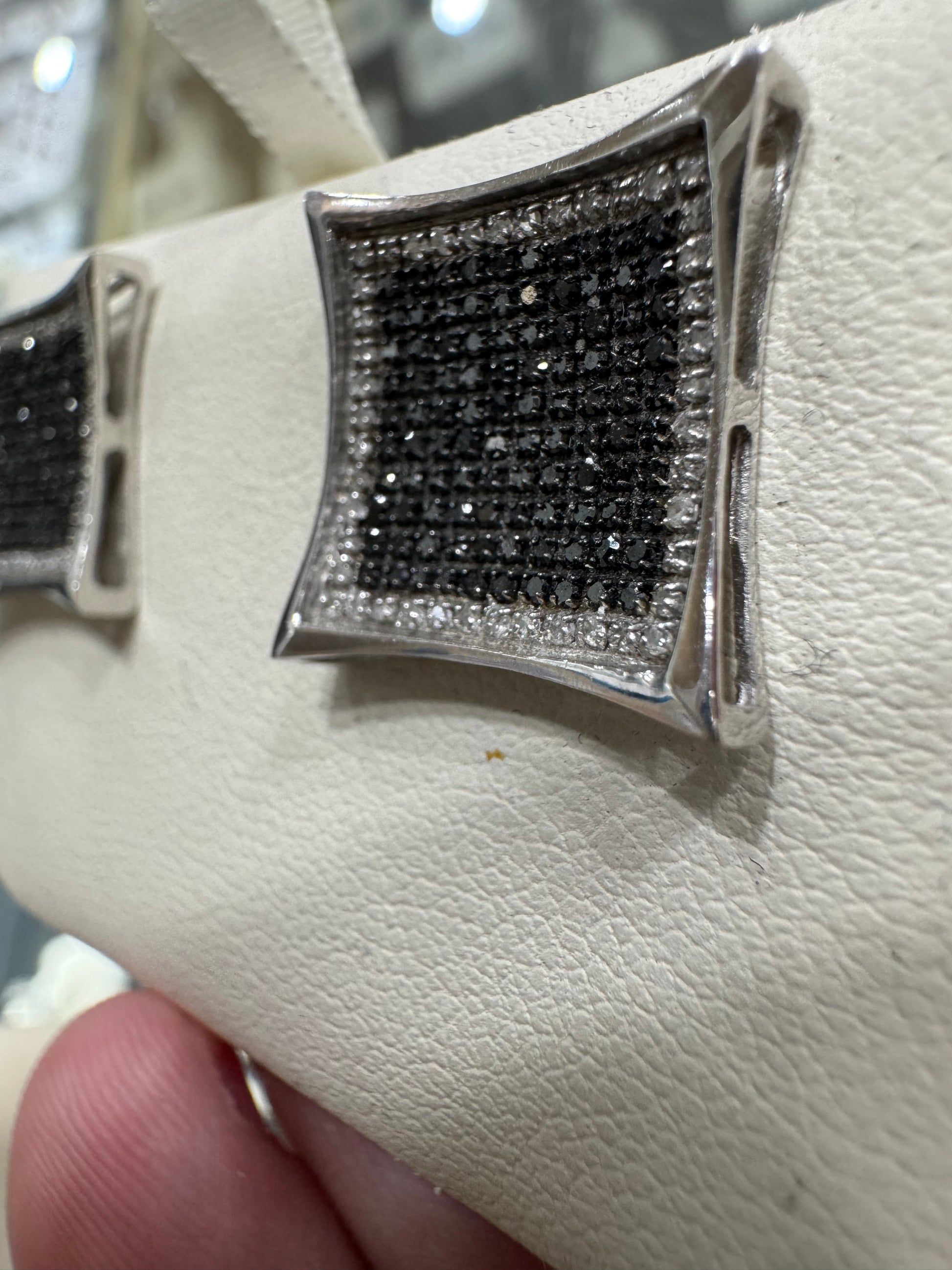 10K White Gold Square Earrings 1.00 ct Black Natural Diamond