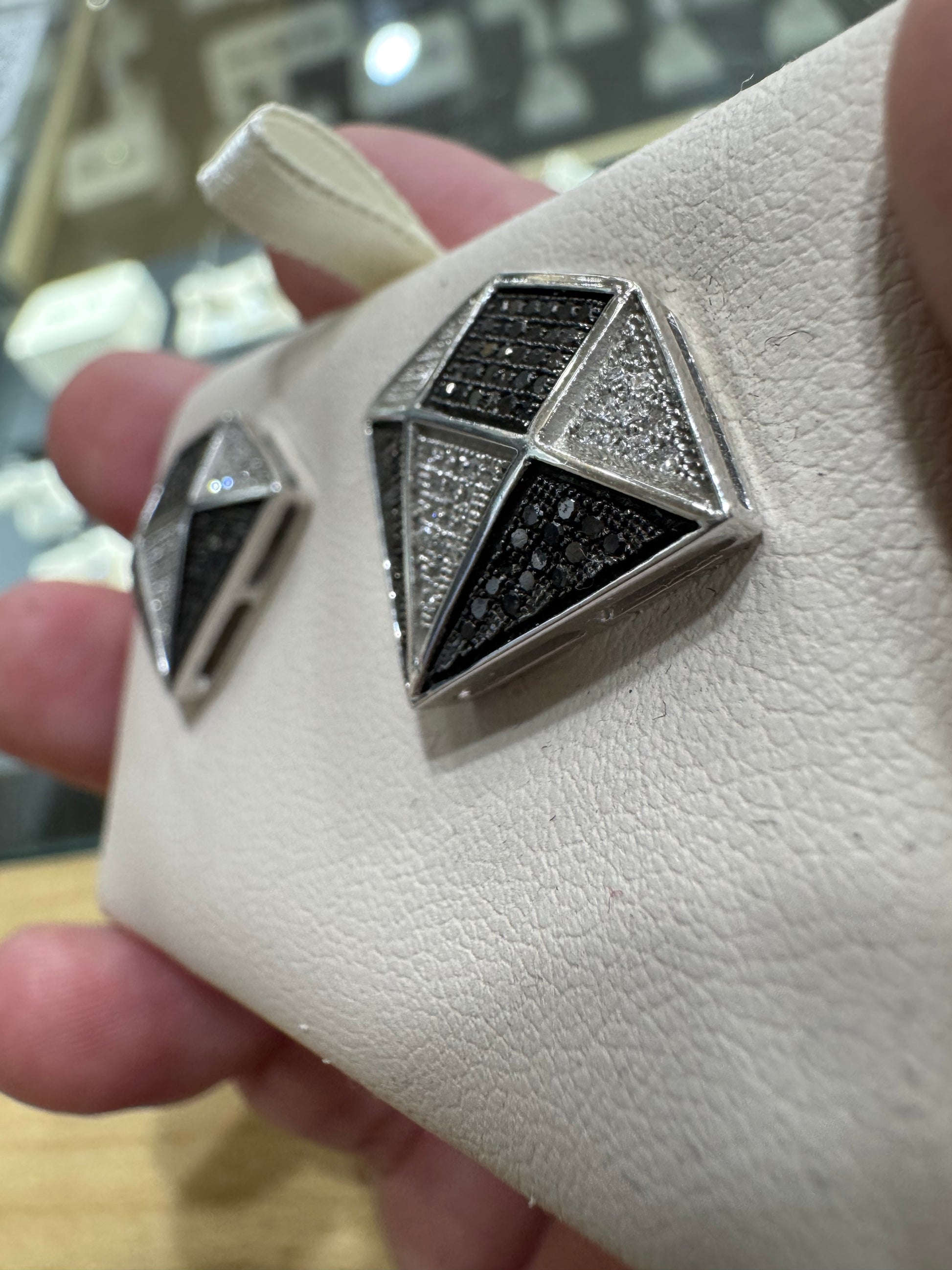 10K White Gold “Diamond Shape” Earrings 0.63 ct Black Natural Diamond