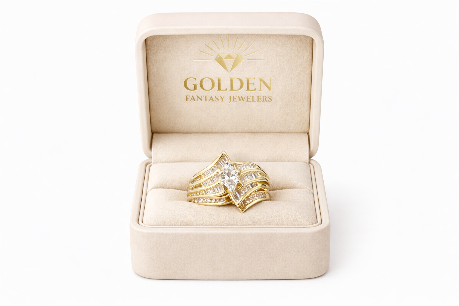 18K Yellow Gold Women's Ring Marquise 1.00 ct Natural Diamond